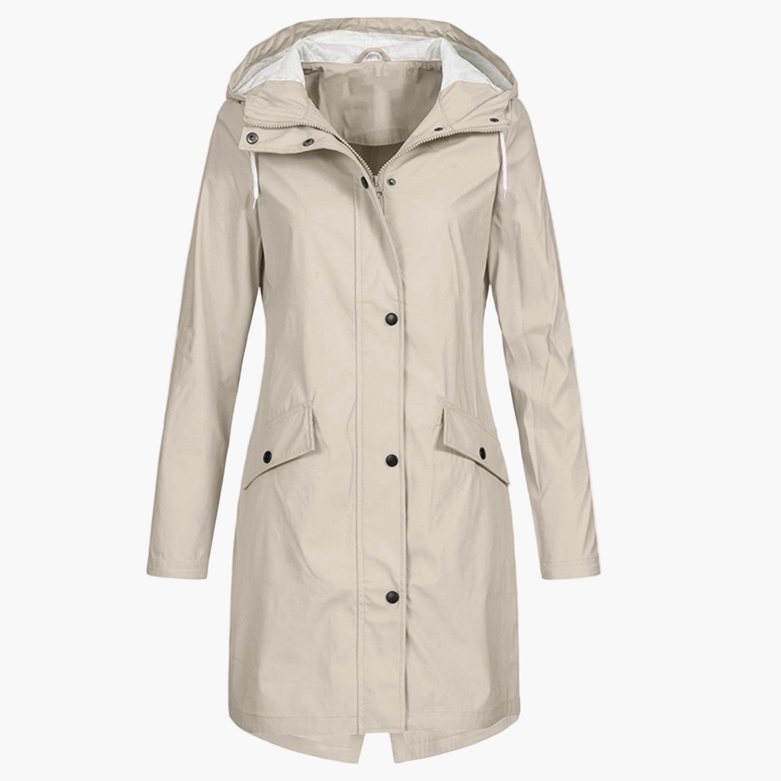 Stine | Let Lang Regnfrakke med Hætte i Trendy Design til Kvinder